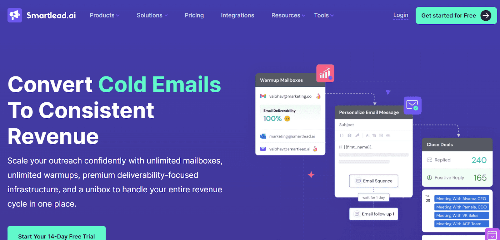O Smartlead vem ganhando tração entre operadores mais técnicos. Sua proposta é oferecer o melhor dos dois mundos: escala com múltiplos domínios e liberdade total para construir cadências, testar variações, automatizar follow-ups e personalizar com variáveis complexas.